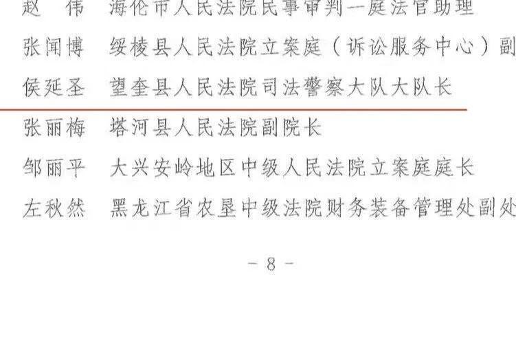 望奎縣人民法院1名個人獲評“全省法院先進個人”稱號