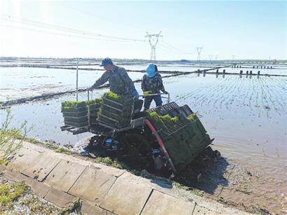 坤站村稻豐糧食種植農民專業合作社理事長楊軍介紹,受氣溫影響,今年插秧比往年延遲一周左右,為了把時間搶回來,合作社社員起早貪黑,從早晨四點多就開始插秧。合作社今年種植水稻面積3000多畝,為抗低溫、保全苗、奪高產,全部采用機械化插秧,一臺插秧機每天可插秧50畝。楊軍說,去年建設的水稻公園成為游客網紅打卡地,今年在稻田公園新設計一個慶祝建黨100周年和鄉村振興的彩繪圖案,助力鄉村旅游業發展。