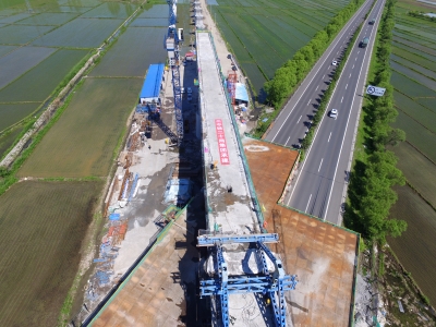 中鐵二十局佳鶴鐵路二分部經理魏偉介紹,作為全線跨度最大的連續梁,該橋跨越鶴大高速公路,施工中需分節段澆筑混凝土,技術標準要求高、安全風險大。
