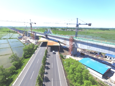 跨鶴大高速公路特大橋位于黑龍江省鶴崗市境內,連續梁的合龍模式為先邊跨、后中跨,該橋全長8393.84米,是全線最長的特大橋和控制性工程。