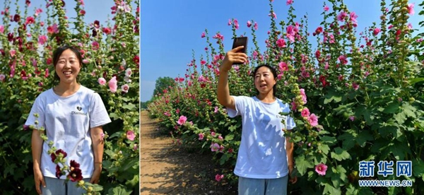 拼版照片:左圖為杜云芝在太原市小店區王吳村鮮花種植基地;右圖為杜云芝在鮮花種植基地進行直播(7月7日攝)。今年30歲的杜云芝外出務工近10年,作為一名資深銷售人員,她有著豐富的直播經驗。近年來,太原市小店區王吳村大力發展鄉村旅游,杜云芝回到家鄉,用手機記錄鄉村變化,宣傳家鄉美景。