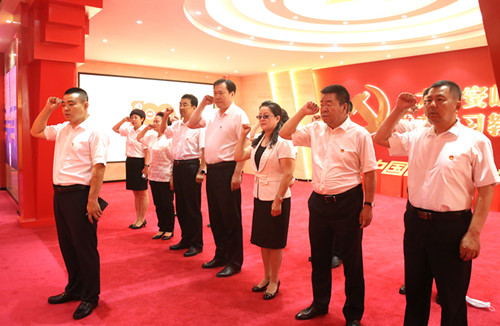 在地區黨史學習教育展館,面對鮮紅的黨旗,新林區委書記領誓,區委理論學習中心組成員集體宣誓,重溫入黨誓詞,砥礪前進初心,勇擔職責使命。