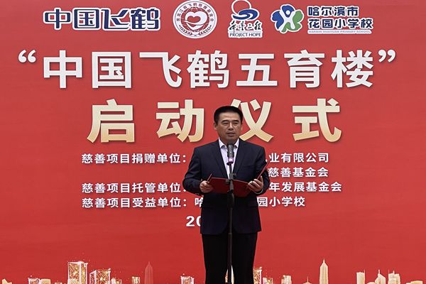 飛鶴乳業(yè)黨委書記、飛鶴慈善基金會(huì)理事長朱天龍在啟動(dòng)儀式上說,在中秋國慶即將到來之際,我們滿懷喜悅的心情,在百年名校哈爾濱市花園小學(xué)校舉行“中國飛鶴五育樓”公益慈善助教項(xiàng)目啟動(dòng)儀式,這是飛鶴乳業(yè)履行社會(huì)責(zé)任、情系教育事業(yè)的又一項(xiàng)助教工程。在黑龍江省貫徹落實(shí)黨中央“雙減”政策,深入推進(jìn)五育并舉,促進(jìn)學(xué)生德智體美勞全面發(fā)展的重要時(shí)期。飛鶴向哈爾濱市花園小學(xué)捐贈(zèng)625萬元,用于花園小學(xué)“五育樓”項(xiàng)目改造,這是一項(xiàng)利在當(dāng)代,功在千秋的公益慈善助教項(xiàng)目,旨在更好地優(yōu)化我省基礎(chǔ)教育教師學(xué)習(xí)培訓(xùn)環(huán)境,為花園小學(xué)教學(xué)提供更好的辦學(xué)條件,也是助力黑龍江省基礎(chǔ)教育的改革。省教育廳副廳長姜同河、團(tuán)省委副書記張濤對(duì)飛鶴乳業(yè)的慈善助教善舉給予充分的肯定和贊許。花園小學(xué)校長曹永鳴代表學(xué)校的孩子們向飛鶴乳業(yè)的慈善捐助表達(dá)深深的謝意!