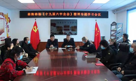 林海林場組織黨員干部職工,學習貫徹落實黨的十九屆六中全會精神,夯實黨的引領教育。要求全體黨員干部要進一步學習和落實全會精神,以學促用,在實踐中提升思想認識,以更加飽滿的精神狀態、更加務實的工作作風,立足本職,扎實工作,努力開創林場工作新局面。