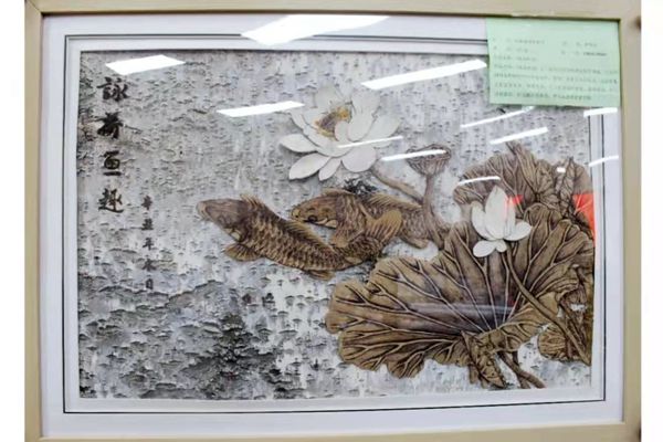 作品“生命衛士鐘南山”采用大興安嶺原始森林優質樺樹皮粘貼而成,畫中鐘南山院士表情凝重,目光堅毅,展現了一名共產黨員面對疫情無私奉獻的決心。作品“蘭閨雅集圖”,情致盎然、祥和靈動,給人以和諧、溫馨,讓人心生美好。
