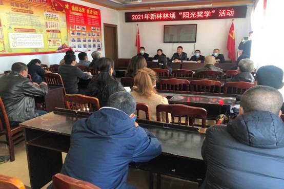 圖為新林林場班子成員為職工發放陽光獎學金(楊光 攝)