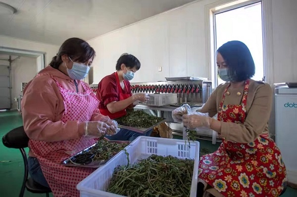 新林林業局翠崗林場職工利用自制茶品工作臺制作“心花怒放”“君子好球”主題系列手工茶品(劉琦 攝)