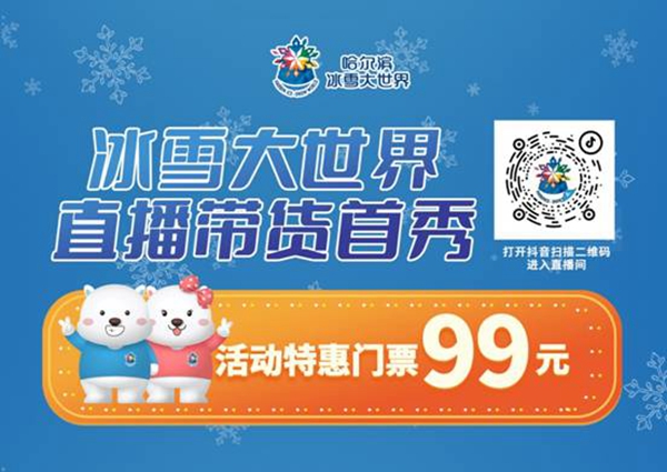 1月22日,哈爾濱冰雪大世界將啟動直播帶貨首秀。1月22日——24日連續3天,每天17:00——21:00相約哈爾濱冰雪大世界官方抖音直播間,搶鉅惠門票,抽取超多幸運大獎。