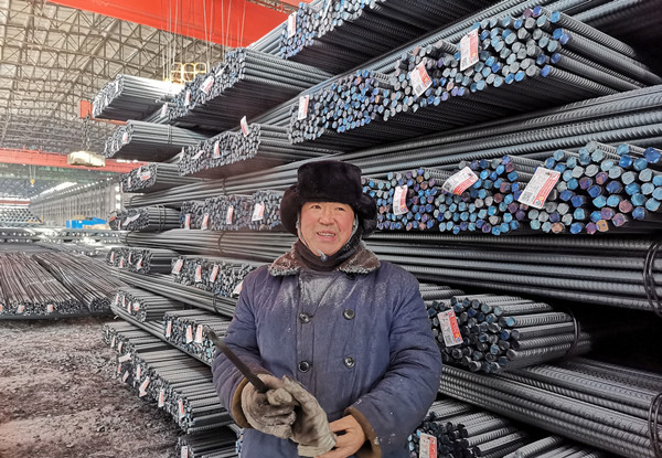 在鋼材成口庫,一位身穿工裝大棉襖、頭戴棉帽,捂得嚴嚴實實,臉色微紅的,帽沿掛滿了霜的工人十分引人注目。他叫朱世軍,是軋鋼廠發(fā)運作業(yè)區(qū)丙班的一名普通司索操作員,初一正是白班,主要負責鋼材裝運掛鉤和為火車車皮用鐵線鎖車門工作,一但發(fā)運繁忙時,無論白班還是夜班都得在室外作業(yè)裝車,企業(yè)鋼材就靠他們配合裝上火車發(fā)往市場的。“今天得發(fā)運鋼材110車左右,每天上班,在成品庫得上上下下,得走好幾里地,今天就挺冷啊,最低零下26度,冷風吹的嘴都木了,既使戴著棉手套,手也都凍僵了,但是,每天一想到通過我的努力,把建龍西鋼鋼材發(fā)往全國各地,為建龍西鋼美好企業(yè)建設(shè)做貢獻,我雖然冷點但心里熱乎乎的,真心感到驕傲和自豪。