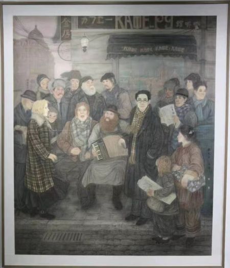 哈爾濱理工大學(xué)蔣博老師積極響應(yīng)黑龍江省“重大歷史題材”美術(shù)創(chuàng)作工程,與愛人吳天文共同努力,攜手創(chuàng)作出了《瞿秋白·心中流淌的國際歌》這件作品。經(jīng)過初期大量的搜集歷史資料,再到草圖的繪制,最后定稿繪制完成,前后歷時近三年。這幅作品的靈感來源于1921年瞿秋白以記者的身份訪俄,在哈爾濱一個多月的滯留期間,感受到了共產(chǎn)主義的氣息,第一次聽到了由俄國人傳唱的《國際歌》。凝重的節(jié)奏與激昂的旋律催人覺醒,使人奮進(jìn)。隨后他決定將這首歌翻譯成中文,通過簡化之后的巧妙翻譯以更加通俗易懂的口吻使民眾接受而廣為傳唱。