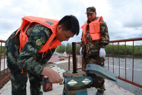 阿木爾林業(yè)局防汛人員關(guān)閉閘門,防止因額木爾河水上漲倒灌居民區(qū)(王力 攝)