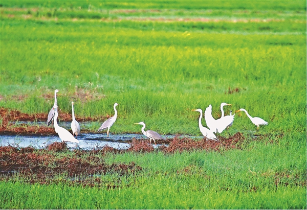 近日,寶清縣七星河國家級自然保護區濕地內迎來大批游客,一望無際的濕地和葦塘讓游客心曠神怡。游客登上觀鳥臺,俯瞰濕地,夕陽下大批的水鳥在七星河內覓食嬉戲,“葦蕩連天碧,水鳥漫云空”,一幅人與自然和諧共生的真實寫照。