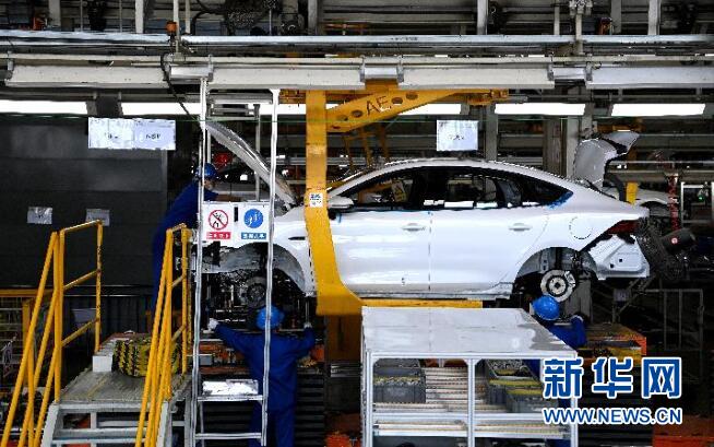 2022年4月20日,工作人員在西安比亞迪草堂工業(yè)園汽車總裝廠進(jìn)行新能源汽車裝配。新華社記者 劉瀟 攝