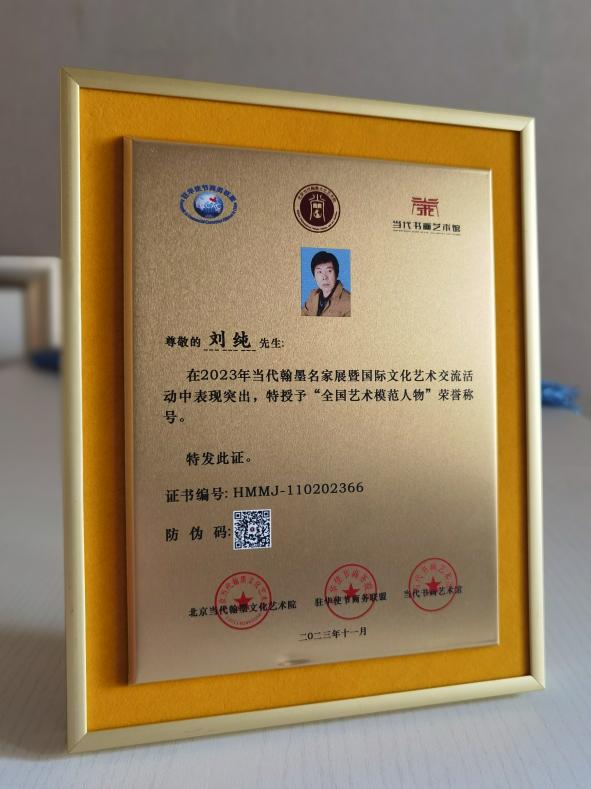 黑龍江經濟網訊(記者王振紅 文/攝)日前,由北京當代翰墨文化藝術院主辦的全國第五屆當代翰墨名家展頒獎盛典在北京圓滿結束。應巴基斯坦駐華大使館邀請,與會藝術家參加了中巴文化藝術交流并贈送書畫作品。龍江著名美術家劉純獲大賽一等獎,被主辦單位與駐華使節商務聯盟(ECCAC)共同授予“全國藝術模范人物”榮譽稱號和中外國際文化交流大使。