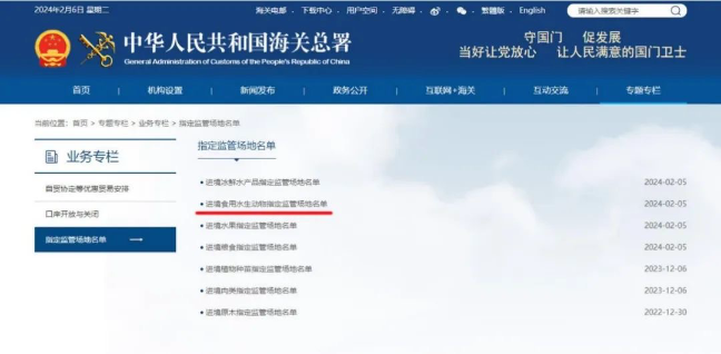 2023年12月14日-15日,海關(guān)總署專家組對哈爾濱太平國際機場進境食用水生動物指定監(jiān)管場地進行驗收。2月5日海關(guān)總署公告正式通過驗收。