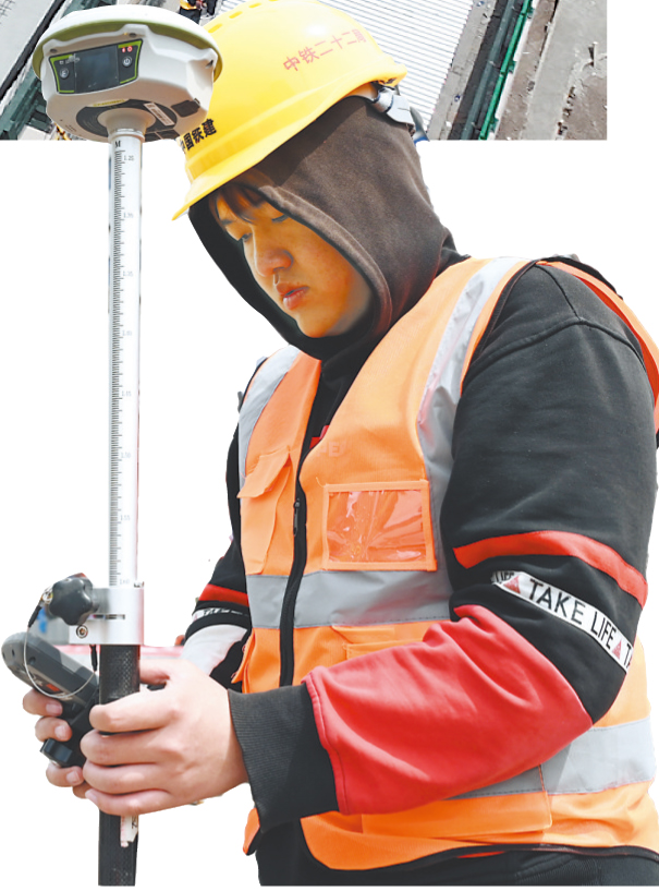 工作人員手持GPS精準定位。本報記者 郭俊峰攝