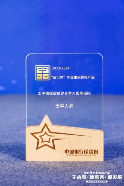 近日,由《中國銀行保險報》主辦的第53期保險熱點對話舉辦,保險機構、高校學者圍繞“新時代下的保險產品:守本源 重服務 促發展”這一主題建言獻策。活動中發布了2023-2024“金口碑”年度保險產品名單,太平人壽“太平歲歲鑫享終身壽險”“太平福祿御禧終身重大疾病保險”“太平傳世四號教育年金保險”等多款產品入選,榮獲年度壽險保險產品、年度重疾保險產品、年度創新保險產品等殊榮。