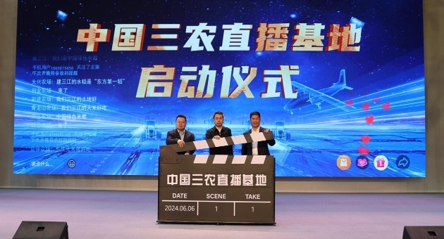 “三二一,上鏈接”,2024年6月6日上午10點,隨著現場打卡板被按下,在北大荒農墾集團有限公司建三江分公司,“中國三農直播基地”按下啟動鍵,標志著三農電商直播領域又一個新型數智化平臺正式進入建設運營階段。