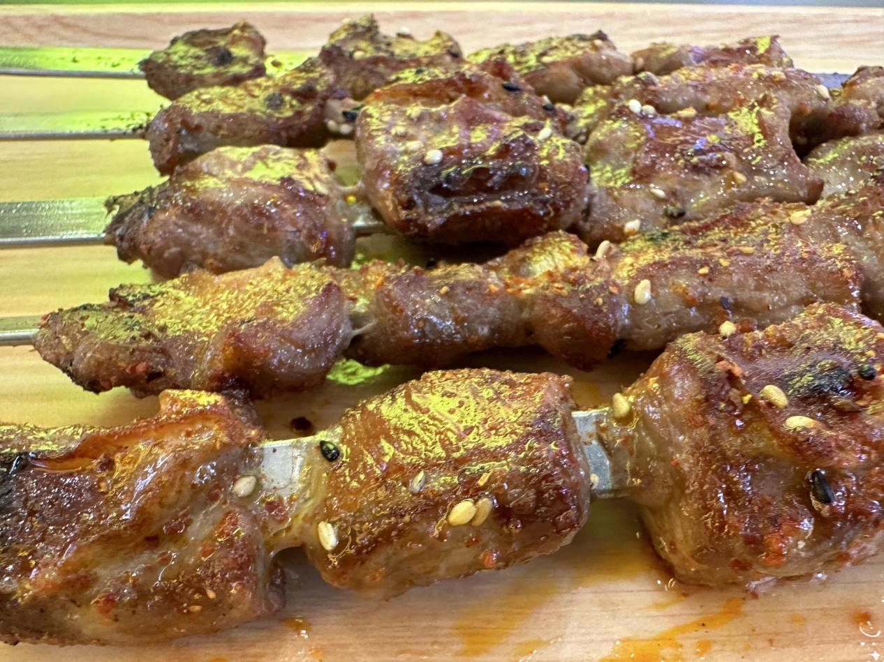 暮色降臨,綏化市青岡縣街頭的炭不二燒烤店內(nèi)早已座無(wú)虛席,滋滋冒油的大油邊在炭火上翻滾,金黃油亮的肉串被烤得滋滋作響,食客們大快朵頤。從明水一店,開(kāi)到青岡二店,一路飄香。店主王安國(guó)穿梭在人群中,臉上洋溢著喜悅:“每天400多串根本不夠賣!試營(yíng)業(yè)以來(lái),店里天天爆滿,老顧客帶著新客人,都沖著這口大油邊來(lái)的。”說(shuō)話間,一位熟客又推門而入,她笑著對(duì)服務(wù)員說(shuō):“老樣子,先來(lái)十串大油邊!嘗過(guò)一次就忘不了這脆皮爆汁的口感,太幸福了!”回頭客絡(luò)繹不絕。