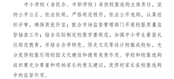 近日,重慶市教委與市場監管局聯合發布的《關于進一步加強中小學生校服管理工作的指導意見(征求意見稿)》,以“明確主體責任、強化家長監督、鼓勵自主選購”為核心,為校服管理提供了一份兼具針對性與操作性的“重慶方案”。