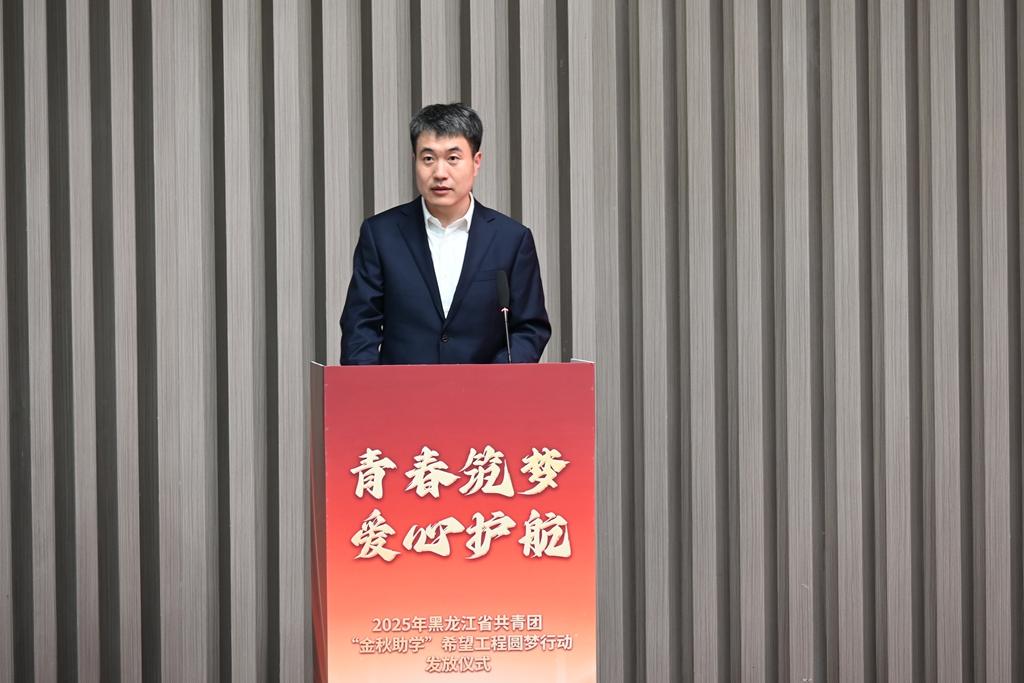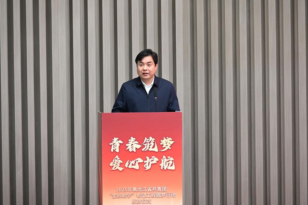 黑龍江經濟網訊(王丹陽 于衍行 記者祝東)9月23日,由共青團黑龍江省委員會、黑龍江省青少年發展基金會主辦,共青團齊齊哈爾市委員會、齊齊哈爾大學承辦的2025年黑龍江省共青團“金秋助學”希望工程圓夢行動發放儀式在齊齊哈爾大學成功舉辦。共青團黑龍江省委員會副書記張濤,中共齊齊哈爾市委副書記劉振江,齊齊哈爾大學黨委副書記張文治,黑龍江省希望工程捐助中心主任杜晶,黑龍江北大倉集團有限公司黨委書記、總裁隋熙鳳,共青團齊齊哈爾市委員會書記王剛,以及社會各界愛心企業、齊齊哈爾市學生代表等共計300余人參加本次活動。