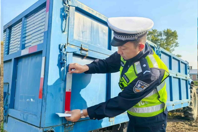 黑龍江經濟網訊(李寶 劉昌龍 記者梁新立)9月23日,五大連池市公安局反恐與交巡特警大隊持續深化農用車“亮尾”行動,以“嚴管控、廣宣傳”的工作思路,全面加強秋收期間農村道路交通安全管理,有效預防和減少因農用車尾部標識不清引發的夜間交通事故,為群眾秋收時節出行安全點亮“警示燈”。