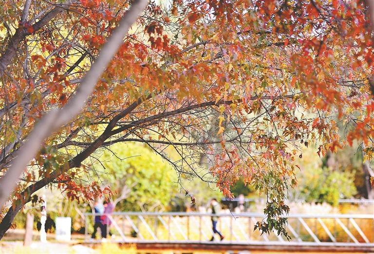 近日,哈爾濱市道里區群力景江東路附近的綠地、公園內,樹上的葉子五彩斑斕,地面上鋪了一層落葉,美麗的秋景如同油畫一般,吸引人們駐足觀看、拍照。國慶中秋假期,冰城隨處可見迷人的秋色,市民不出市區便可觀賞到美景。