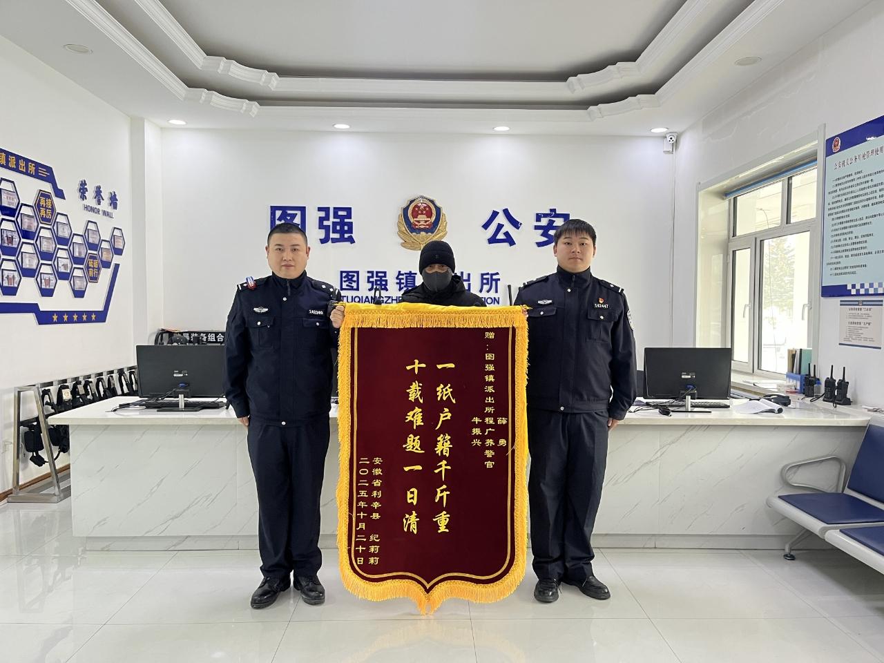 黑龍江經濟網訊(顧蘭)“一紙戶籍千斤重,十載難題一日清”,這面錦旗從南國水鄉利辛,到北國邊陲大興安嶺圖強林業局,跨越了2200多公里的山河,在這個冬寒漸深的季節,圖強警方用行動證明溫暖從不因距離而褪色,為民服務的初心始終熠熠生輝。
