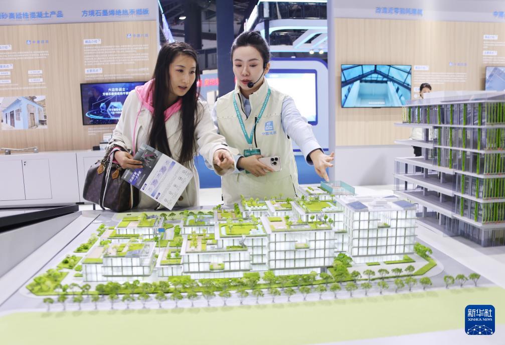 ??11月6日,參觀者在住博會(huì)上了解綠色低碳好房子的展出內(nèi)容。新華社記者 潘旭 攝